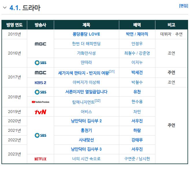 - 그리고 드라마 데뷔작은 퐁당퐁당love에서 주연 역활로 데뷔하게 되는데 비쥬얼이 좋아서 그런지 드라마 데뷔가 바로 주연급이네요 ^^ 멋지당 .. 낭만닥터 김사부에서는 시즌2부터 주연급 서우진으로 나오고 있습니다 .