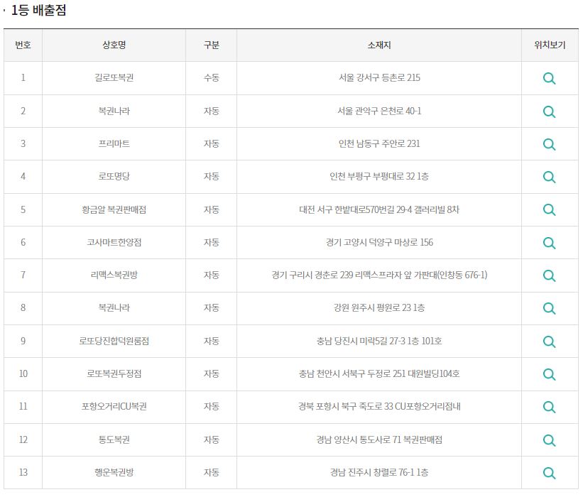 1100회차 1등,2등 로또 당첨번호 지역과 판매점